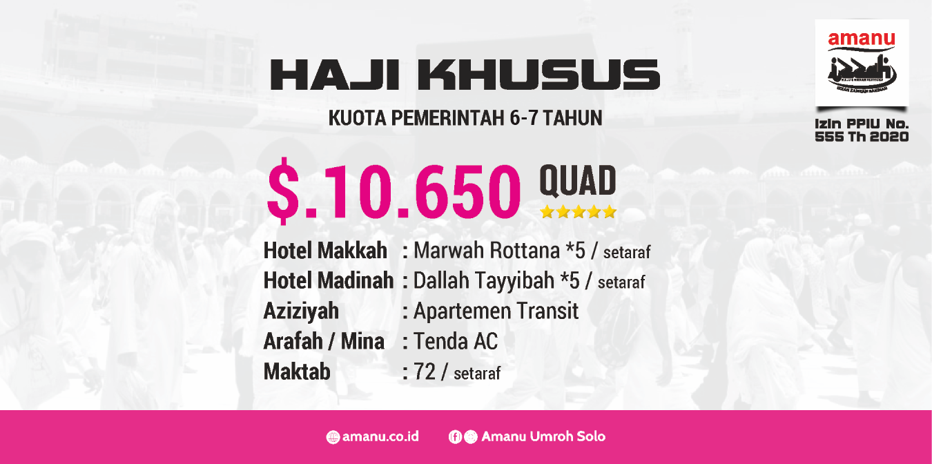 Ya tinggal jamaah yang menentukan, mau ibadah haji reguler masa tunggu sekitar kurang lebih 30 tahun dengan estimasi biaya 69 juta atau haji khusus masa tunggu sekitar 6-7 tahun dengan kisaran biaya 150-170 juta dengan fasilitas bintang 4 dan 5. Untuk melihat paket haji khusus kami silahkan klik link dibawah ini Paket Haji Khusus Masa Tunggu 6-7 Tahun