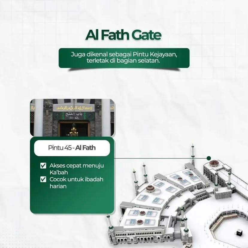 Pintu 45 atau Bab Al-Fath disebut juga pintu kejayaan adalah salah satu gerbang utama di sisi selatan Masjidil Haram, Makkah, yang memiliki nilai historis terkait penaklukan kota Makkah (Fathu Makkah). Pintu ini merupakan akses yang langsung menuju area tempat Sa’i (Mas’a), menjadikannya strategis untuk masuk atau keluar setelah tahallul.