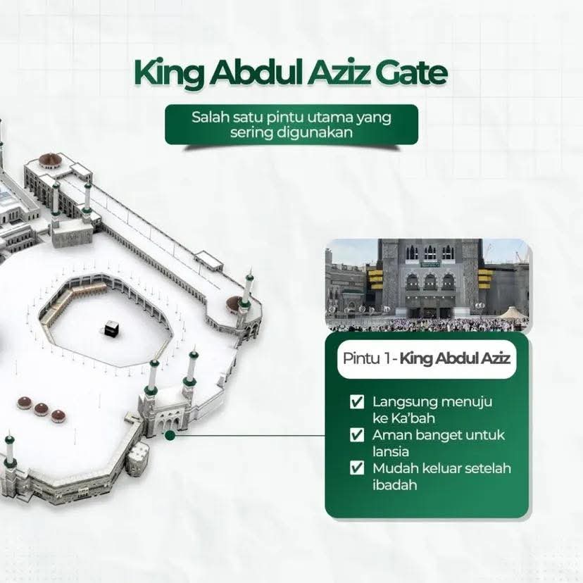 - Landmark: Merupakan salah satu dari 5 gerbang utama yang ikonik dan sering digunakan jamaah.